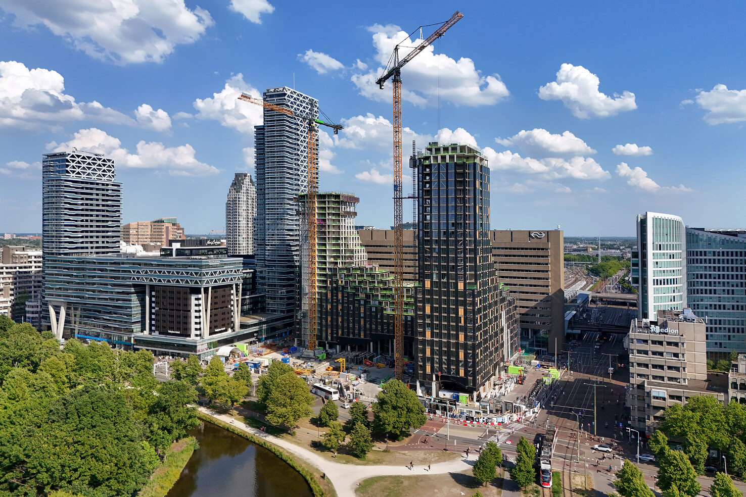 The monumental façade, reflecting the stately architecture of The Hague, is energized by the fluid station hall on the ground floor – a captivating introduction to the city.’